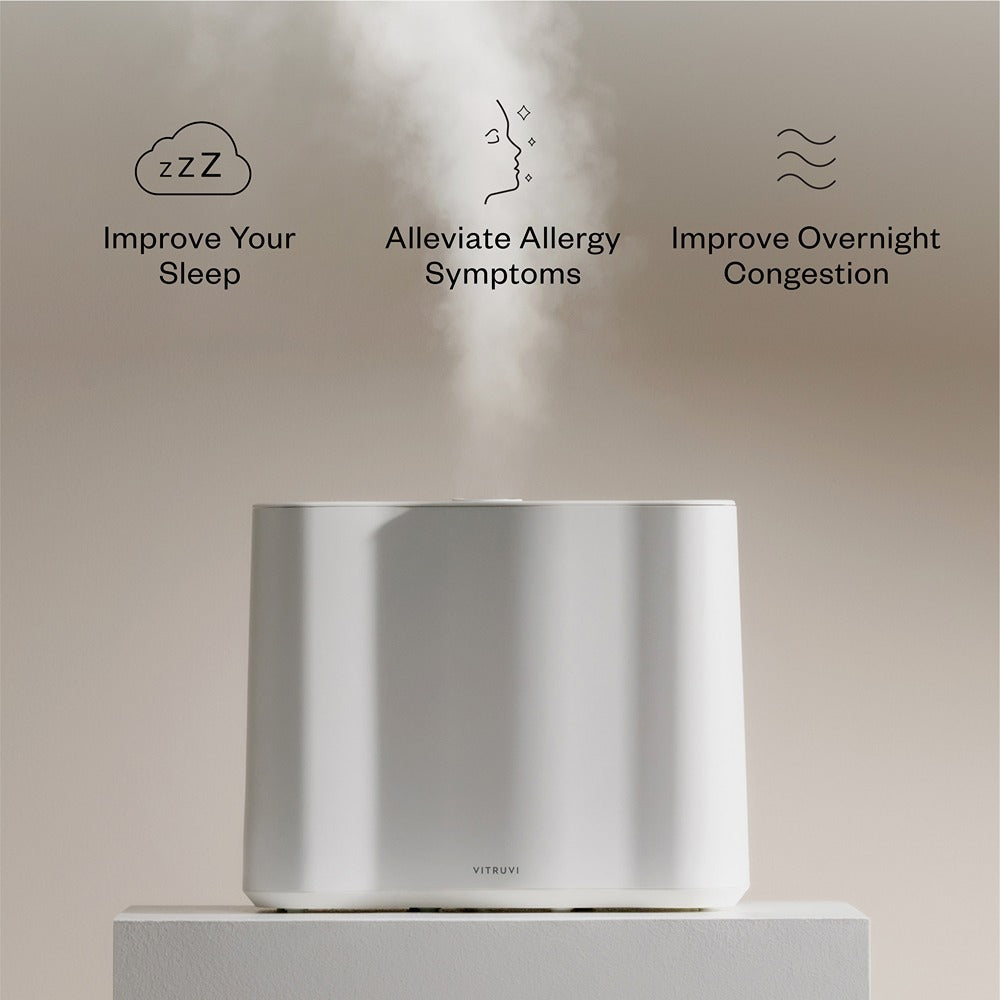 Elevate your sleep and beauty routine with the Cloud Humidifier. Whisper-quiet and designed for optimal performance, it provides a continuous cool mist that hydrates your skin and hair, promoting a dewy complexion and silky locks. With settings ranging from 8 to 24 hours and a light-free night mode, it ensures undisturbed, restful sleep. Safe for kids and easy to clean with a dishwasher-safe water bucket, the Cloud Humidifier is the perfect addition to your bedroom for enhanced wellness and natural immunity. Its compact, nightstand-friendly design fits seamlessly into any space, humidifying rooms up to 600 sq.-ft.