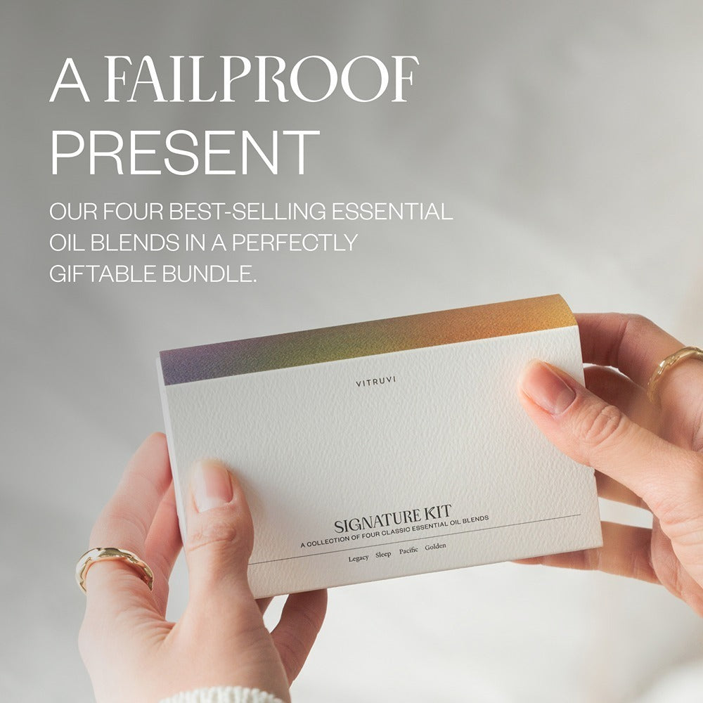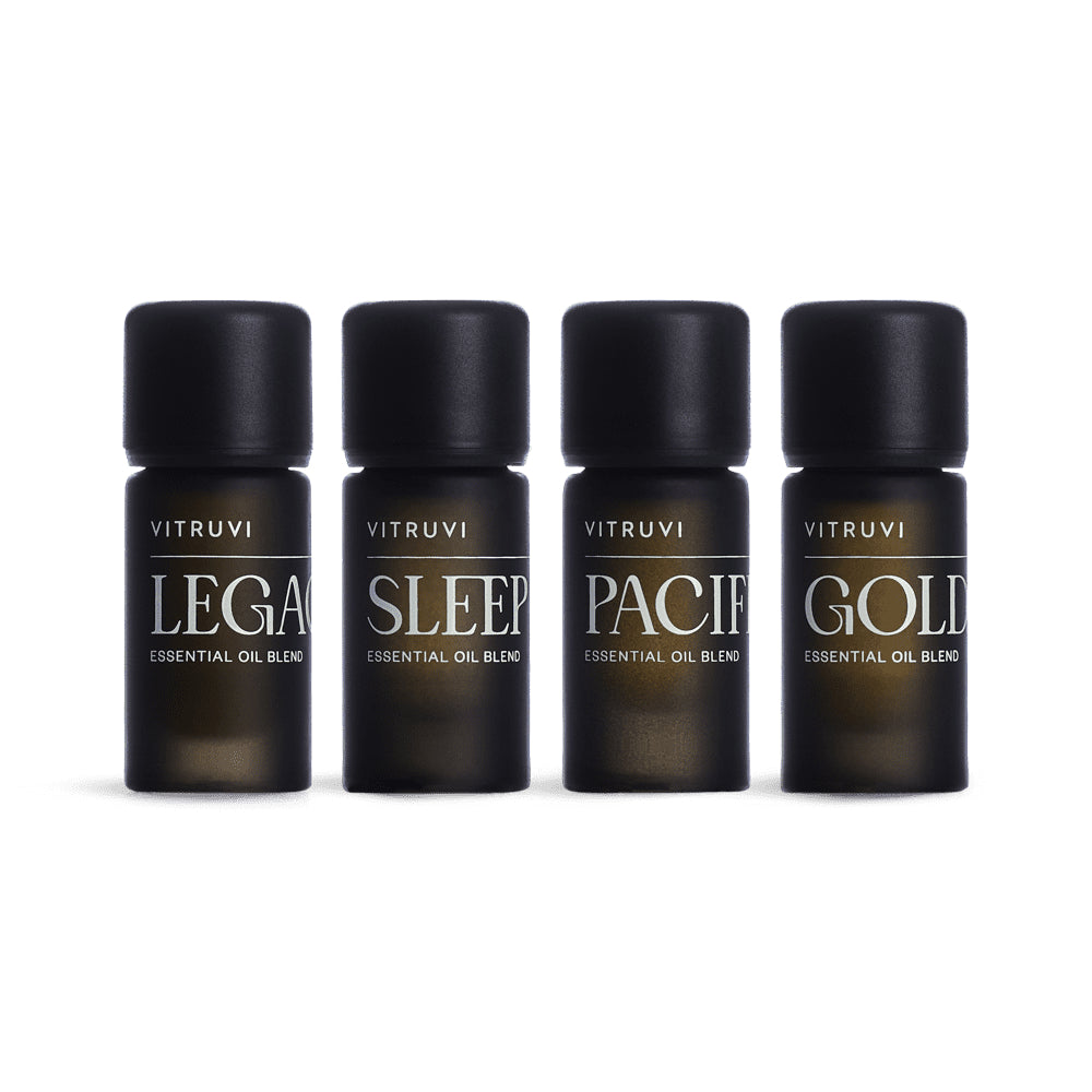 A collection of our 4 most legendary essential oil blends, offering a perfect harmony of floral, citrus, herbal, and woodsy aromas to create a balanced atmosphere, promote relaxation, and elevate your home environment with a diffuser.